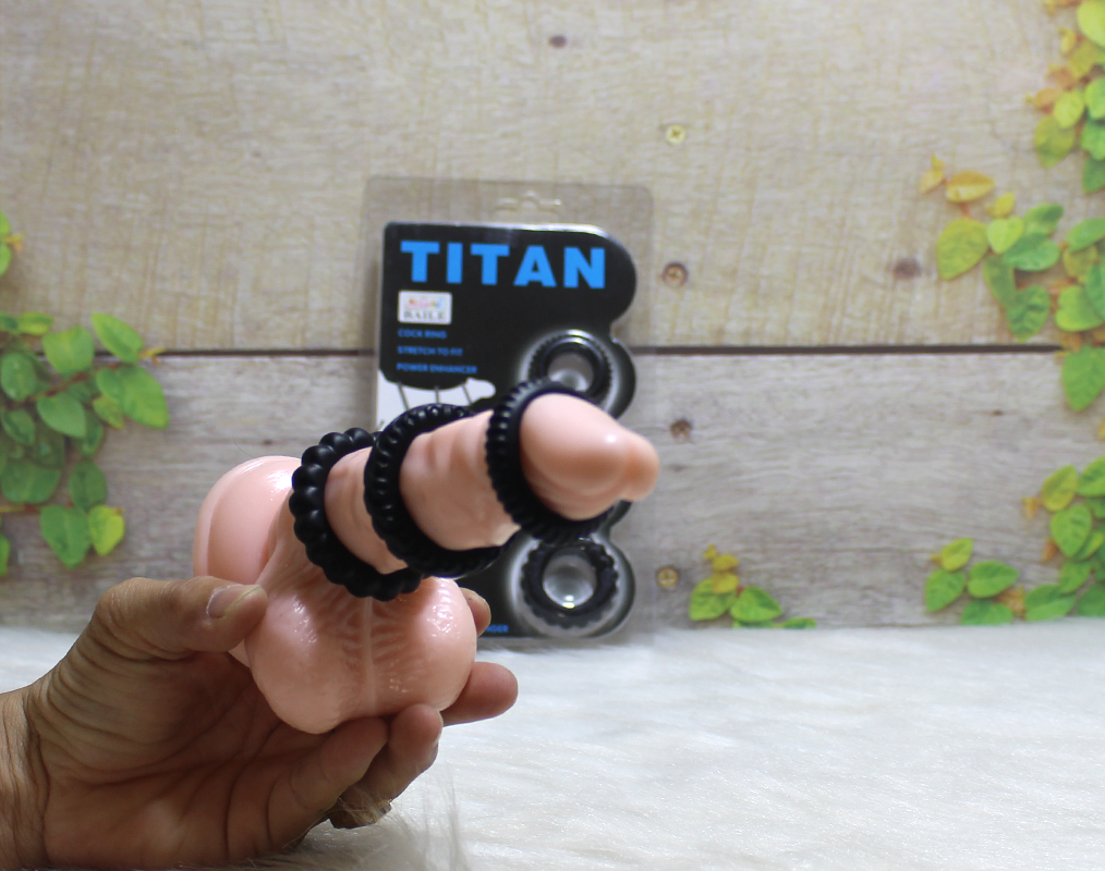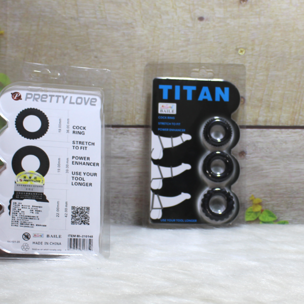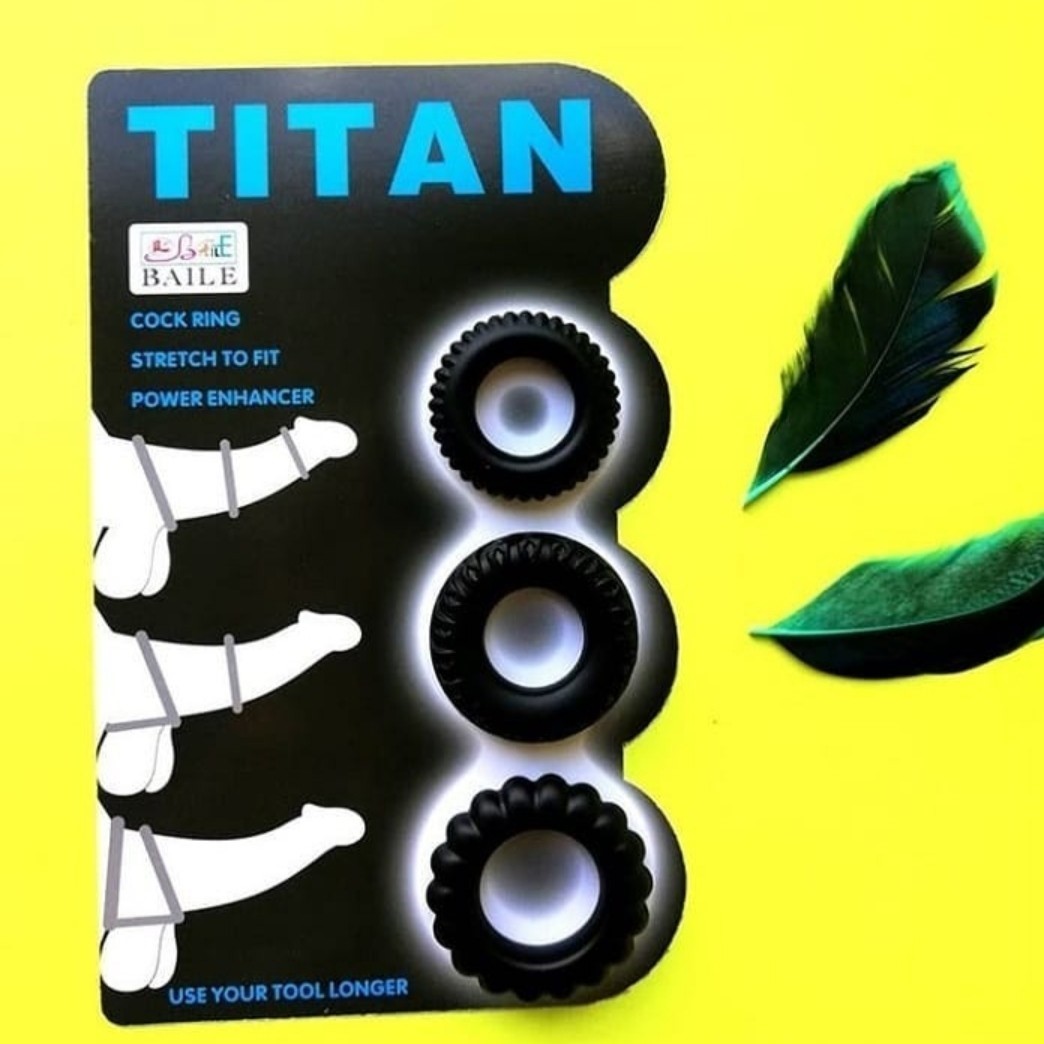 ห่วงสวม เซ็ต Titan มาพร้อมกันเป็นเซ็ต มี 3 ห่วง 3 สไตล์ ซื้อไปแล้วคู่นอนคุณจะไม่ผิดหวังทั้งช่วยในเรื่องของการชะลอการหลั่งได้ดีและยังทำให้คู่นอนเสียวได้อีก